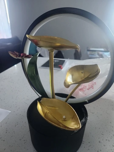 Son design moderne — un cercle lumineux entourant de délicates feuilles dorées — symbolise la lumière, la nature et le flux de l’énergie positive.